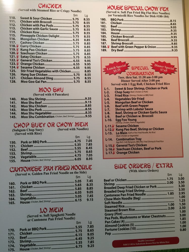 Welcome to Chinese Ho Carryout, a hidden gem nestled at 27W183 Geneva Rd, Winfield, IL. This Chinese eatery stands out for its extensive menu, offering a delightful array of vegetarian options alongside classic dishes. Expect to find favorites like Egg Foo Young, Kung Pao Tofu, and Mongolian Beef, all prepared with fresh, crisp vegetables that truly elevate the dining experience.